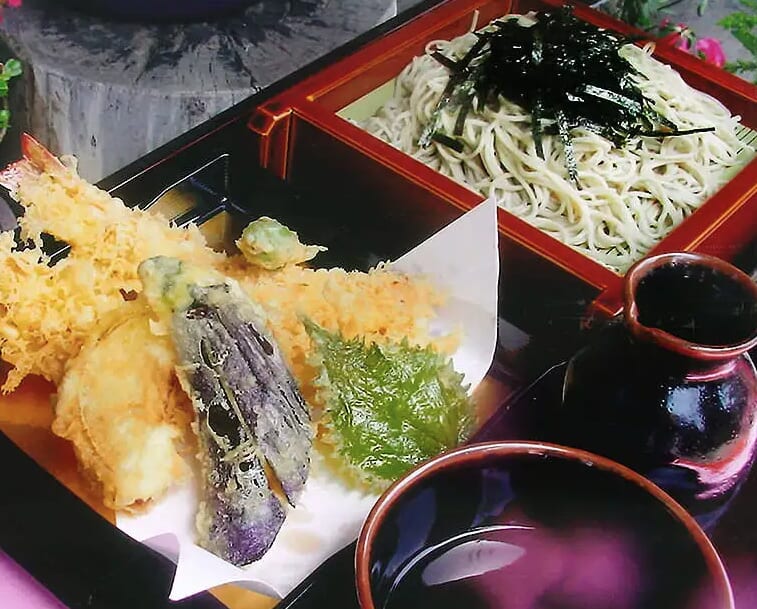 玉屋の看板メニューは「元禄二八そば」。これは、そば粉8割・小麦粉2割という伝統的な割合で作られており、石臼挽きのそば粉を使って毎日丁寧に打たれています。しっかりとしたコシと滑らかな喉越し、そして豊かな香りが楽しめる逸品です。また、つなぎを一切使わない「十割そば」も提供しており、そば本来の風味をじっくりと味わいたい方におすすめです。