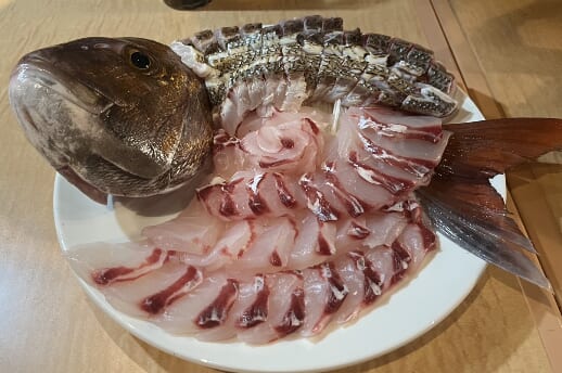 写真は、常連のお客様が釣られたタイのお刺身です。