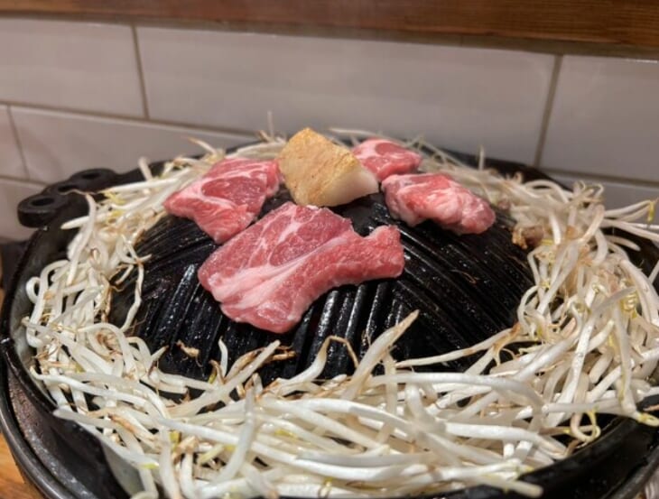 オクノ羊ヤでは、一人一つの専用鍋が提供されるスタイル。自分のペースでじっくり焼いて楽しめるのが嬉しいポイントです。しかも全席無煙ロースターが導入されており、服や髪にニオイがつきにくく、女性客にも大好評。また、焼肉店とは違って、店内は落ち着いた照明と木目調のインテリアで統一されていて、大人が静かに楽しめる雰囲気も魅力の一つ。デートや小規模な会食にもぴったりです。