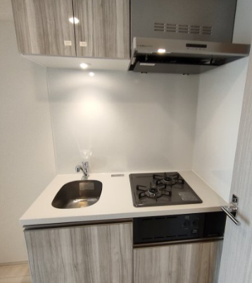 2口コンロのシステムキッチンで、料理スペースも確保されております!