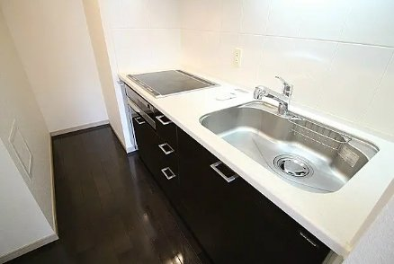 2口コンロのシステムキッチンで、料理できるスペースも確保できており、自炊の好きな方に特におすすめいたします。