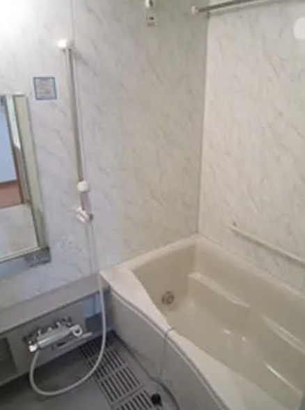 風呂場はシンプルで清潔感のあるデザインが特徴です。浴槽は適度な広さがあり、ゆったりと湯船に浸かってリラックスできます。壁や床には防水性・防カビ性の素材が使われており、掃除もしやすく衛生的です。浴室には換気扇が設置されており、湿気やカビの発生を抑えることができます。毎日の入浴が快適に行える、使い勝手の良いバスルームです。